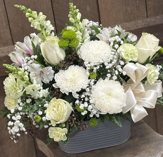 A beautiful sympathy style arrangement designed to show your love and condolences. Perfect for sending to a visitation or sending to a home after the services.